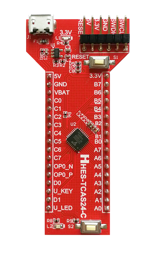HES-TCAS24-Kit信號(hào)鏈MCU實(shí)驗(yàn)套件以上海泰矽微電子有限公司的TCAS24A信號(hào)鏈MCU芯片為核心CPU,由核心板HES-TCAS24-C(簡(jiǎn)稱C板)與擴(kuò)展板HES-TCAS24-E(簡(jiǎn)稱E板)兩個(gè)模塊構(gòu)成。TCAS24A信號(hào)鏈微控制器是國(guó)內(nèi)研發(fā)制造,具有自主知識(shí)產(chǎn)權(quán)的基于32位ARM Cortex-M0內(nèi)核及豐富模擬外設(shè)及數(shù)字外設(shè)資源的高新能信號(hào)鏈SoC芯片。該套件不但可以完成MCU、數(shù)字電路、模擬電路等實(shí)驗(yàn)項(xiàng)目,還可以配合DCLK-1000/2000、HA-EDA01等實(shí)驗(yàn)套件使用,拓展實(shí)驗(yàn)領(lǐng)域。同時(shí)HES-TCAS24-Kit套件小巧靈活、功能強(qiáng)大,適合學(xué)生在宿舍或家中進(jìn)行一些科技創(chuàng)新、電設(shè)比賽使用。